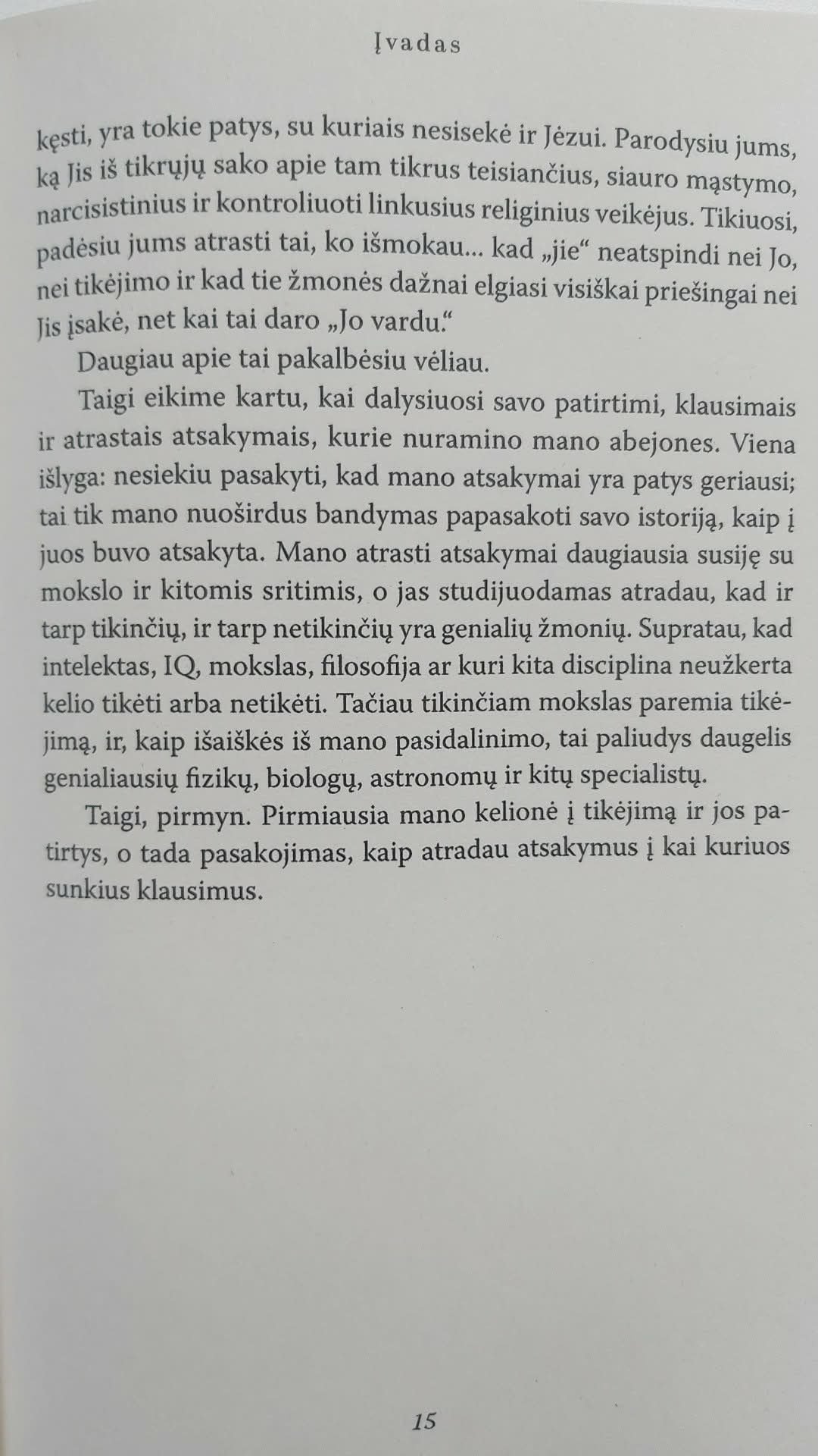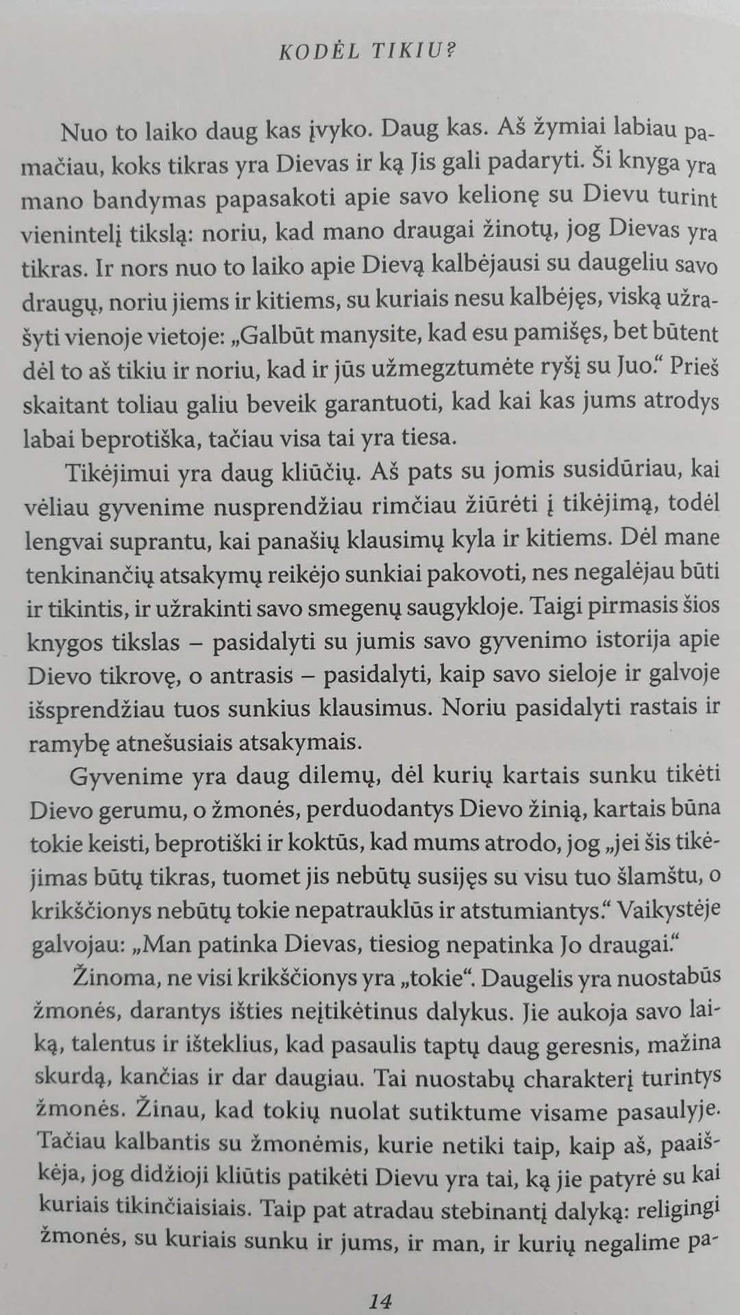 Vieno didžiųjų mūsų laikų mokslo protų bei tikėjimo skelbėjo knyga Kodėl tikiu parašyta panašiu stiliumi kaip novatoriškos knygos An Unquiet Mind, When Breath Becomes Air ar On Being Mortal. Šioje knygoje meistriškai atskleidžiamos dvasinės paieškos.