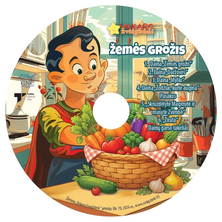 Žurnalo priede – muzikinėje kompaktinėje plokštelėje „Žemės grožis“ – skamba linksmos dainos, pasakos bei dainų garso takeliai.